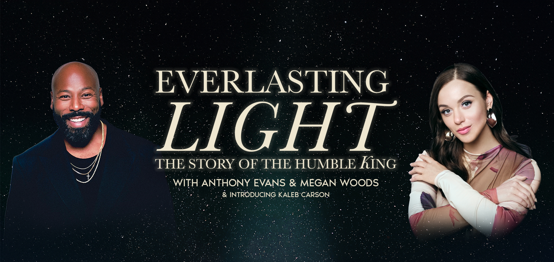 “Everlasting Light: The Story Of The Humble King” will include a tapestry of timeless congregational Christmas carols and hymns from artists Anthony Evans and Megan Woods elevated by a world-class orchestra, band, and joined by special guest Kaleb Carson and the Indiana Wesleyan University Chorale led by Davy Chinn. Songs have been arranged by world-renowned orchestrators and producers Phillip Keveren and Jared Haschek.